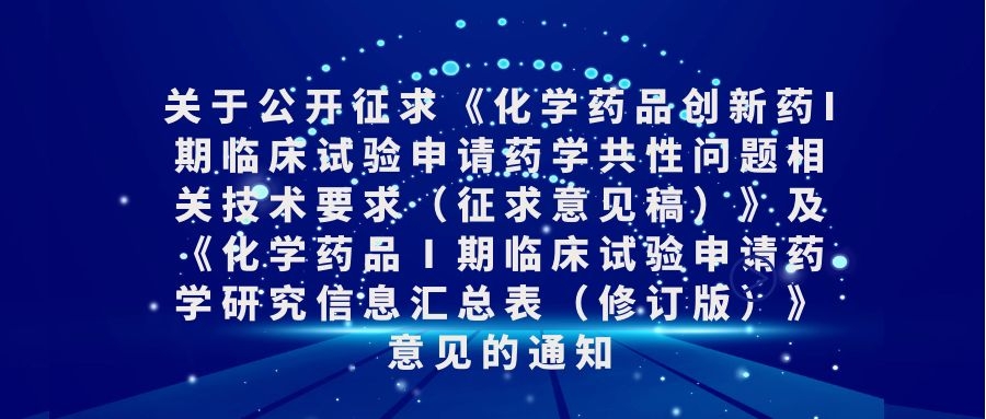 readmore>>關于公開征求《化學藥品創(chuàng)新藥I期臨床試...