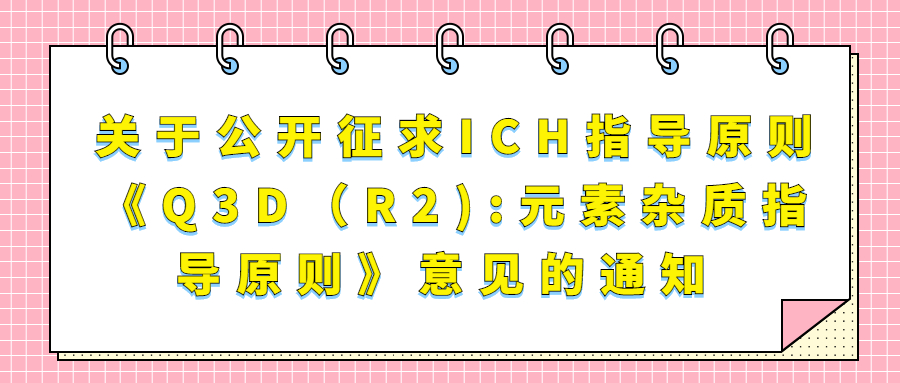 readmore>>關于公開征求ICH指導原則《Q3D(R...